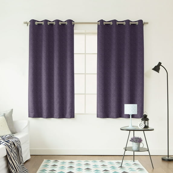 Quality Home'S Linen Texture Print Room Darkening Grommet Curtains - 52" X 84" - Purple (Set Of 2 Panels)