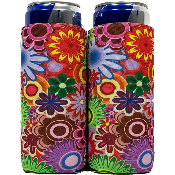 Hero image 0 of QualityPerfection Can Cooler Sleeves Slim Neoprene 12oz Can Holder Set of 2 Hippie Flowers, 0 of 7