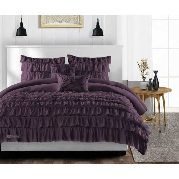 Queen Comforter Multi Ruffle Plum 300 GSM Plush Siliconized Microfiber Fill Duvet Insert With 1000 Thread Count Egyptian Cotton Shell Fluffy with Piping & PillowcasesQueen Comforter Multi Ruffle Plum 300 GSM Plush Siliconized Microfiber Fill Duvet Insert 1000 Thread Count Egyptian Cotton Shell Fluffy Piping Pillow