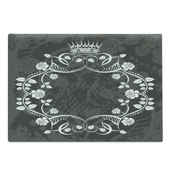 Hero image 0 of Queen Cutting Board, Victorian Antique Circular Flora with Crown Vintage Grunge Rusted Royal, Decorative Tempered Glass Cutting and Serving Board, Large Size, White and Charcoal Grey, by Ambesonne, 0 of 1
