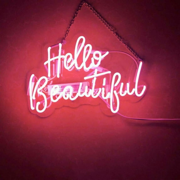 Hero image 0 of Queen Sense 17" Hello Beautiful Neon Sign With Dimmer Acrylic Man Cave Handmade Neon Light 117HBPA2Dim, 0 of 4