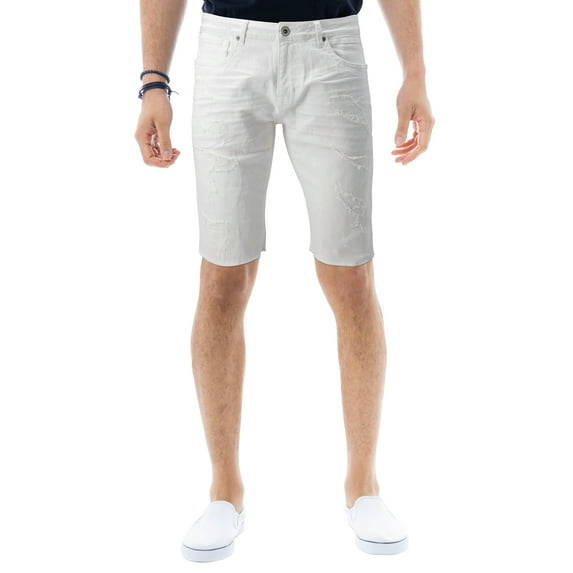 Hero image 0 of RAWX Men's Denim Shorts, Rips Distress Frayed Cut Off Slim Fit Jeans Short for Men, Frayed W/ Rips - White, 36, 0 of 8