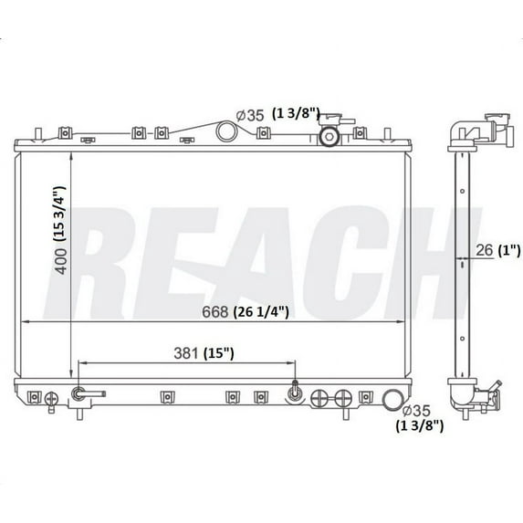 REACH Radiator 41-1286 for 94-92 Hyundai Sonata. REACH designs all of its Radiator's to meet or exceed Original Equipment specifications. This ensures that our Radiator will fit and perform just as well, or better, than the original Radiator that is being replaced. REACH provides all of the necessary fittings and accessories with our Radiator's to ensure first-time fit and quick installation! Radiators are the foundation of any engine cooling system. Tasked with preventing the vehicle from overheating, the radiator is vital to keeping vehicles up and running. We design and manufacture all our radiators to meet or even exceed Original Equipment specifications. We take pride in producing the most reliable replacement parts in the market. Thermal expansion cuts allow for longer life and reduced failure rates by allowing improved core expansion and contraction during normal heat cycles. Our B-Type tubes feature central reinforcement to provide greater tolerance to pressure. Stronger tube design means drastically reduced probability of tube failure. We use longer header tabs for increased pressure resistance. This reduces the potential for tank to header leaks. Our deep extrusion header provides a stronger tube to header joint which is more resistant to the effects of vibration and thermal tube expansion, virtually eliminating tube to header leaks. Our fin edges are folded for increased stability and heat disbursement properties. Our included "multi-fit" attachments allow one radiator to cover multiple vehicle applications without sacrificing OE fit. This results in wider vehicle coverage with substantially less inventory.