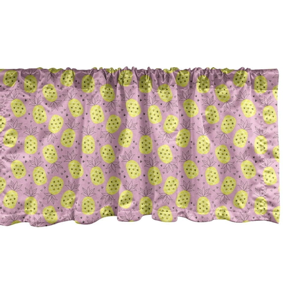 Pineapple Window Valance, Rhythmic Tropical Fruit Hearts Pop Art Style Motifs Illustration Pattern, Curtain Valance for Kitchen Bedroom Decor with Rod Pocket, by Ambesonne
