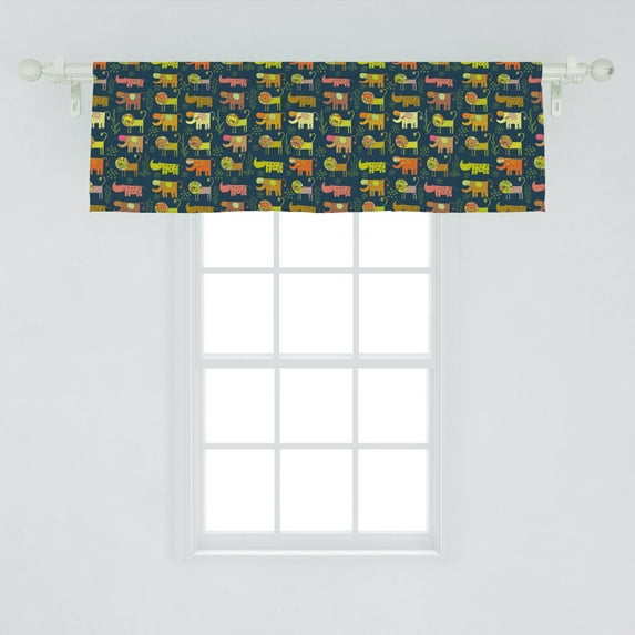 Wildlife Window Valance, Illustration of Whimsical Animals and Plants in Various Colors, Curtain Valance for Kitchen Bedroom Decor with Rod Pocket, by Ambesonne