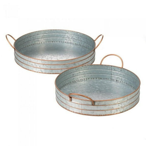 Perfect for Farmhouse-style decors, this set of galvanized metal trays will make a stylish addition to your next party. Each round tray includes handles for easy carrying and ample serving space with a tall edge that's perfect for holding beverages, condiments, and food. A must-have for any host, these galvanized metal trays will let guests help themselves so you can enjoy the party too.
