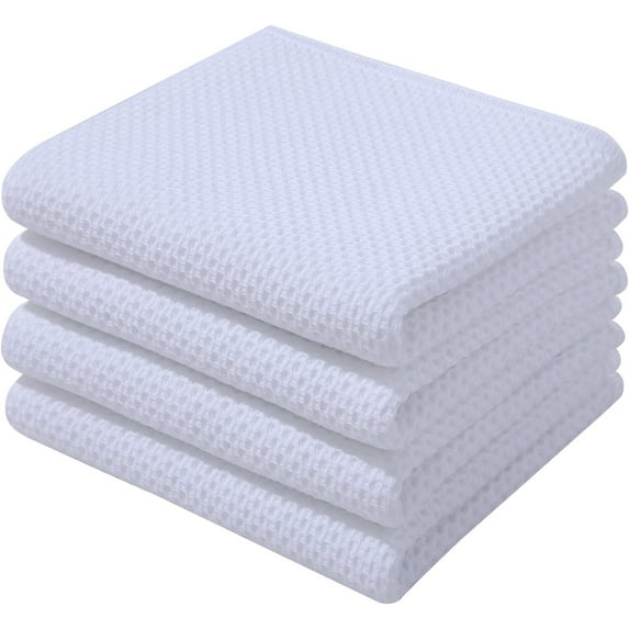 RUseeN 100% Cotton Waffle Weave Kitchen Dish Towels, Ultra Soft Absorbent Quick Drying Cleaning Towel, 13x28 Inches, 4-Pack, White