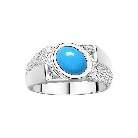 Hero image 0 of RYLOS Men's Rings Sterling Silver Cabochone Gemstone & Diamond Designer Turquoise Rings For Men Size 10, 0 of 5