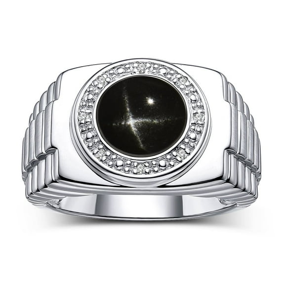 Hero image 0 of RYLOS Men's Rings Sterling Silver Ring Cabochon Gemstone & Diamonds Designer Style Black Star Sapphire Rings For Men Size 8, 0 of 8