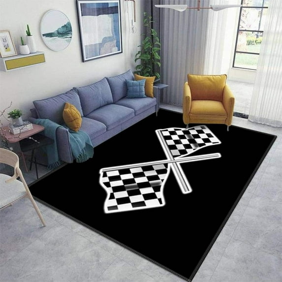 Racing Formula Black and White Check Flag Area Rug, Motorsport Video Games Living Room Rugs, Machine Washable Durable Carpet for Bedroom Dining Room 3x4ft