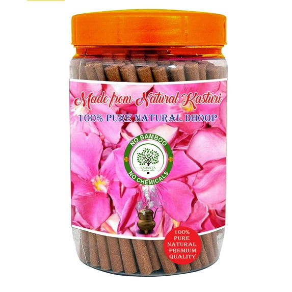 Hero image 0 of Radanya Ayurveda Kasturi Dhoop Sticks, Gulab Dhoop Batti Grade-1 Jar (Pack of 1 x 200Gm) Long Lasting Perfume for 24 Hours Home Fragrance, Meditation, Dhoop for Pooja, 0 of 2