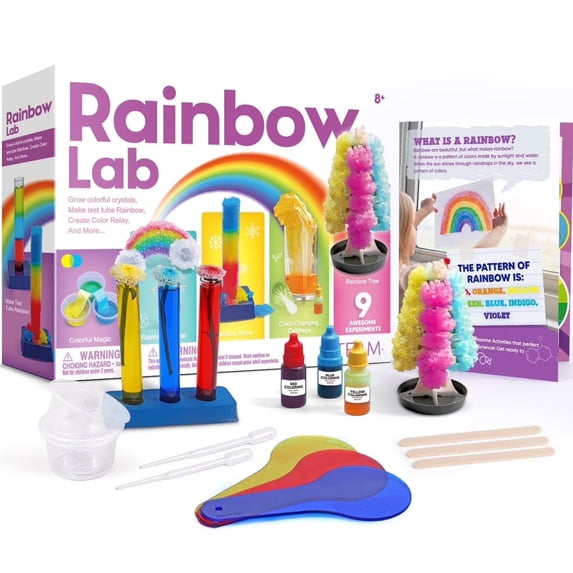 - ๐ All-in-One Rainbow Lab Science Kit This ultimate STEAM Color Lab combines Color Science Experiment Kit, Crystal Growing Kit, and Rainbow Tree Growing Kit โ no extra supplies needed for hours of color and science fun.