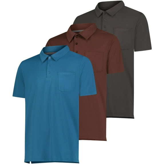 Real Essentials 3 Pack: Men's Short Sleeve Pocket Polo Shirt Dry-Fit Performance Tactical Golf (Available In Big & Tall)