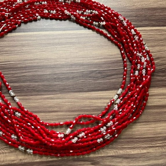 Our red and clear crystals handmade waist beads to adorn and cherish your body. Waist beads have several benefits and have been worn for years in Africa. WholifeCo waist beads are handcrafted with quality glass seed beads.