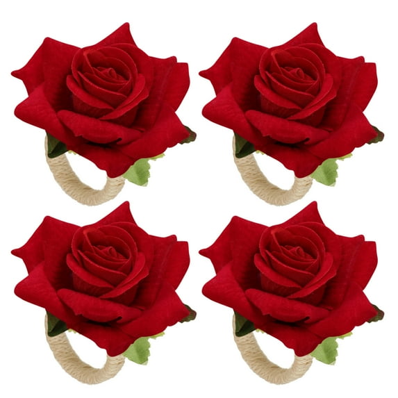 Hero image 0 of Red Flower Napkin Rings Set of 4 Floral Napkin Rings Rose Napkin Holder Handcraft Flower Napkin Rings Wedding Table Decoration for Valentine's Day Wedding Banquet Birthday Party (Red Rose), 0 of 3