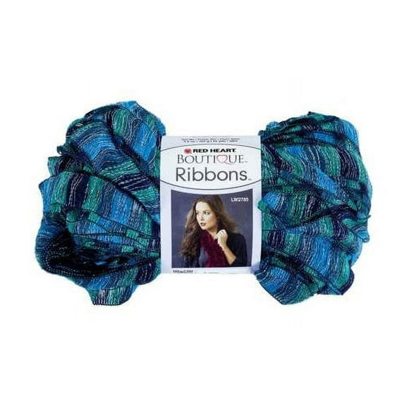 RED HEART-Boutique Ribbons. The newest ruffle yarn with a touch of metallic! It is super easy to use and one ball makes an amazing scarf! Weight category: 6. Content: 75% acrylic; 25% polyester; 3.5 oz/100g; 42yd/38m. Gauge: Knit: 12st x 10r = 4in/10cm on US8/5mm needles; Crochet: 8sc x 10r = 4in/10cm on J10/6mm hook. Care: Hand wash gently in cold water; lay flat to dry; do not bleach; do not iron; may be cry cleaned with any solvent except trichloethylene. Imported. Sold Individually Please note: If there is a color/size/type option, the option closest to the image will be shipped (Or you may receive a random color/size/type).SKU:BMW25211458