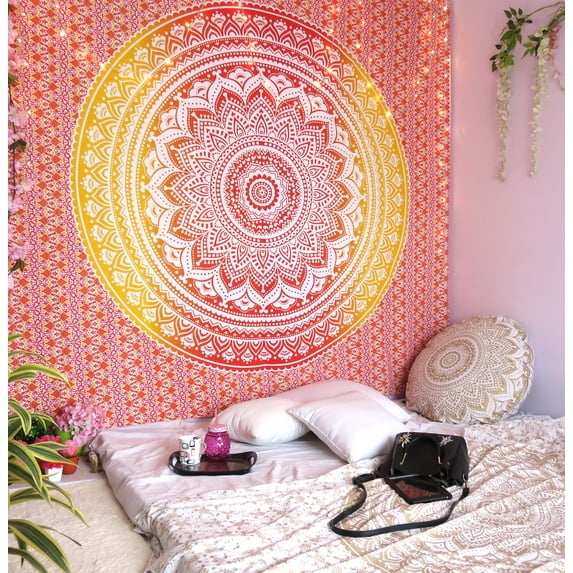 Hero image 0 of Red Orange Wall Hanging Ombre Tapestry Boho Mandala Hippie Tapestries Bohemian Mandala Tapestry Indian Gold Throw Beach Picnic Blanket, 0 of 3