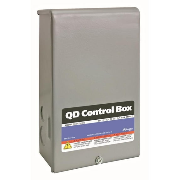 Product Description Red Lion control boxes are designed for use with Red Lion 3-wire single-phase submersible deep well pumps. UL listed in the USA and Canada. Assembled in the USA. From the Manufacturer This well pump control box is for use with well submersible well pump. It features a weather resistant seal and includes quick disconnect relay, overloads and capacitors.