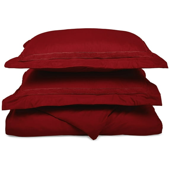 Regal Microfiber Wrinkle-Resistant Duvet Cover and Greek Key Embroidered Pillow Sham Set Burgundy / Full/Queen