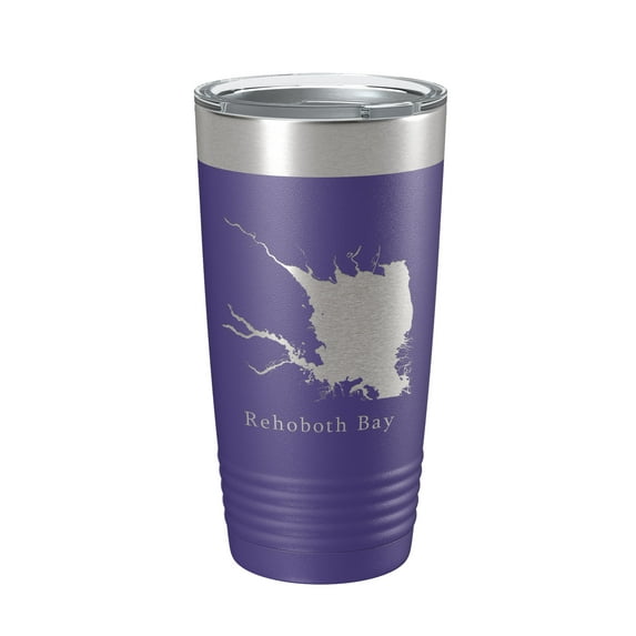 Rehoboth Bay Tumbler Lake Map Travel Mug Insulated Laser Engraved Coffee Cup Delaware 20 oz Purple