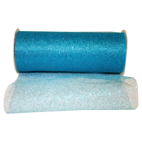 Reliant Ribbon - 25623-913-25J, Glitter Tulle Sparkle Ribbon, Turquoise, 6 Inch, 25 Yards