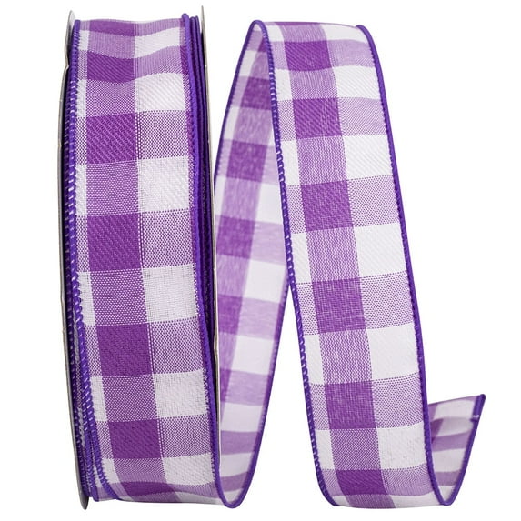 Reliant Ribbon - 93228W-064-09K, Celine Plaid Twill Value Wired Edge Ribbon, Purple, 1-1/2 Inch, 50 Yards