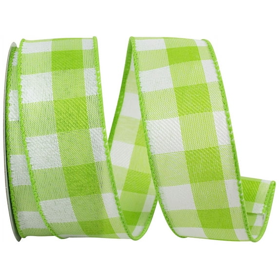 Reliant Ribbon - 93228W-204-09F, Celine Plaid Twill Value Wired Edge Ribbon, Lime, 1-1/2 Inch, 10 Yards