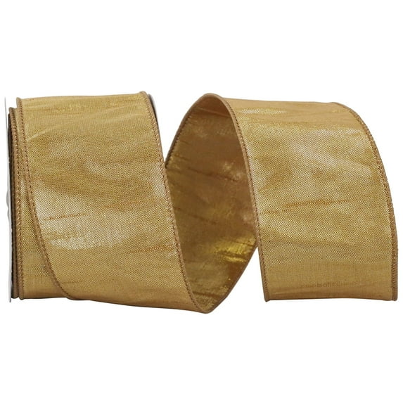 Reliant Ribbon - 93495W-928-40F, Dupione Lame Metallic Wired Edge Ribbon, Old Gold, 2-1/2 Inch, 10 Yards