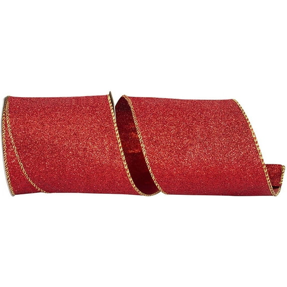 Reliant Ribbon - 97896W-994-10F, Glitter Lame Wired Edge Ribbon, Red/gold, 4 Inch, 10 Yards