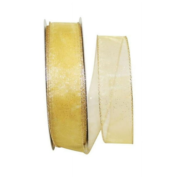Reliant Ribbon - 99910W-035-09K, Sheer Glitz Value Wired Edge Ribbon, Gold, 1-1/2 Inch, 50 Yards