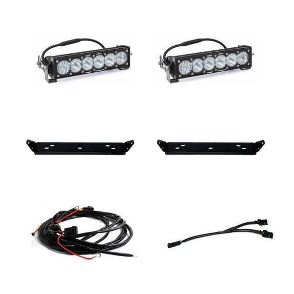 - Comprehensive Kit: Includes two OnX6+ 10-inch light bars (clear or Baja amber), mounting brackets, a splitter wiring harness, a hi-beam wiring harness, and all necessary hardware.