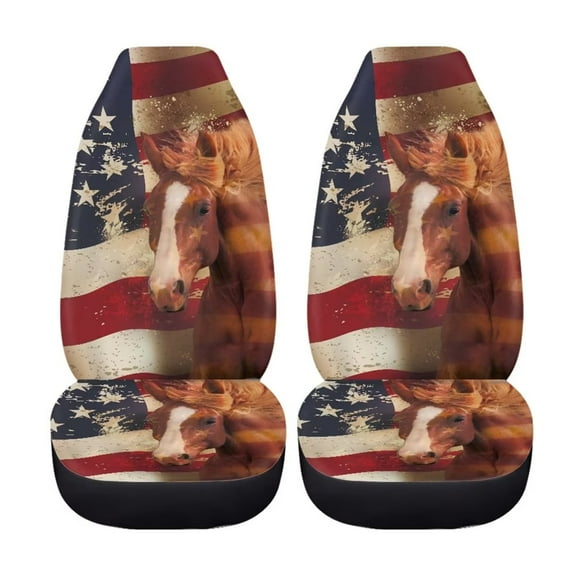 Hero image 0 of Renewold American Flag Horse Car Seat Covers 2 Piece Automotive Interior Accessories Universal Fit Bucket Car Front Seat Protector Covers Polyester Blanket Seat Cover for Most Vehicle, 0 of 5