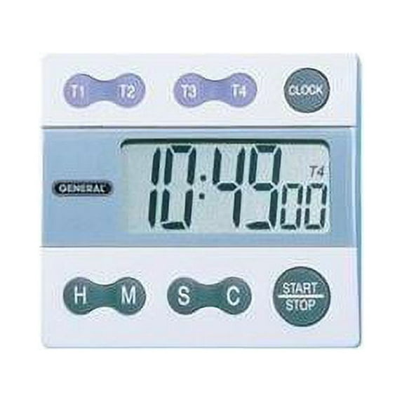 General Tools TI388 Digital 4 Channel Timer and Clock. 4 independent count-down timers Count-down from 99:59:59 Count-up to 99:59:59 1 minute alarm Memory recalls previous time setting Automatically counts-up after reaching zero 12 or 24 hour clock display LCD displays hrs., mins & secs.