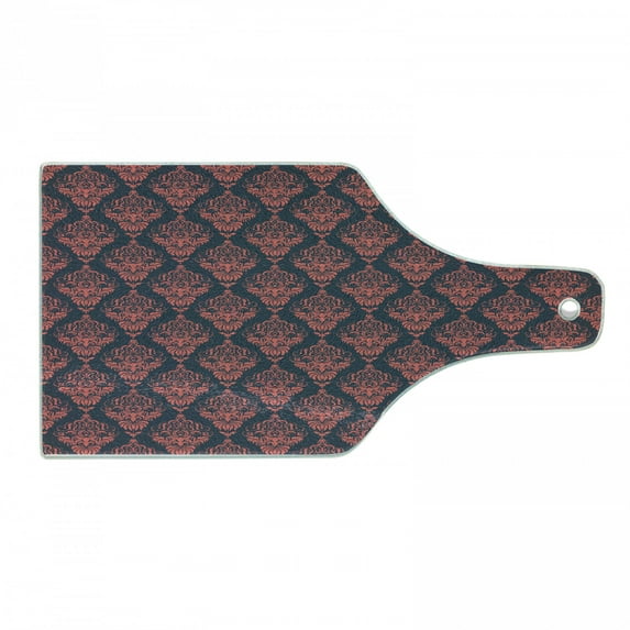 Hero image 0 of Retro Cutting Board, Shabby Baroque Damask with Rococo Effects Feminine Antique Western Design, Tempered Glass Cutting and Serving Board, Wine Bottle Shape, Dark Coral Blue Grey, by Ambesonne, 0 of 1