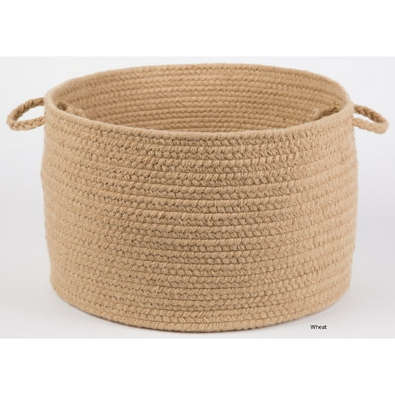 Rhody Rug Woolux Wool Braided Basket 12 inch x 18 inch These cute braided baskets are just what you're looking for when it comes to keeping your space clutter-free. With a spacious interior and braided texture, it's the perfect combination of style and substance, whether you place it in the living room, the den, or the backyard. Rich sophisticated solid colors and a traditional pattern really make this classic style pop.