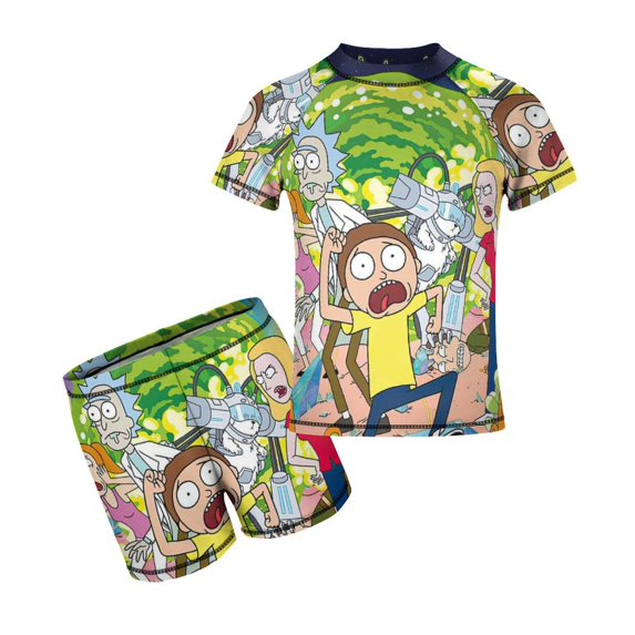 Rick And Morty Boys 2-Piece Swimsuit Set, Short Sleeve Rash Guard & Swim Trunks