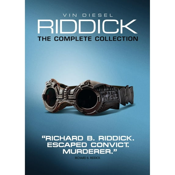 Three-disc set includes: Pitch Black (2000) After a spaceship crashes on a seemingly desolate desert world, the survivors discover it's home to deadly flying predators that thrive in darkness... and the planet's three suns are about to enter total eclipse. The group's only chance for staying alive rests with fugitive killer Riddick (Vin Diesel), but will he help them? Radha Mitchell, Cole Hauser, Keith David also star. Director's cut; 112 min. C/Rtg: R The Chronicles Of Riddick: Dark Fury (2004) Vin Diesel reprises his role as night-sighted interplanetary criminal Richard Riddick, lending his voice to this animated adventure. Serving as a bridge between "Pitch Black" and "The Chronicles of Riddick," the film finds Riddick, Jack and Imam being pursued by a bounty hunter. 35 min. C/Rtg: NR The Chronicles Of Riddick (2004) Action-packed follow-up to the sleeper sci-fi hit "Pitch Black" follows the continuing adventures of grizzled outlaw Richard Riddick (Vin Diesel). Reluctantly joining the struggle against a ruthless interstellar army that's wiping out everyone and everything in it's path, Riddick soon realizes that he may be the only one who can stop the destruction. Colm Feore, Thandie Newton, Karl Urban, Keith David, and Judi Dench co-star. Director's cut; 135 min. C/Rtg: NR Riddick (2013) Set five years after the events of "The Chronicles of Riddick," this exciting sci-fi follow-up finds Richard Riddick (Vin Diesel) double-crossed and left for dead on a remote planet while searching for his homeworld. A distress beacon brings a team of bounty hunters and a band of mercenaries to his location, forcing Riddick to fight for his life against both groups as well as deadly scorpion-like monsters. Jordi Mollà, Dave Bautista, Matt Nable, Katee Sackhoff, Karl Urban co-star. 119 min. C/Rtg: R