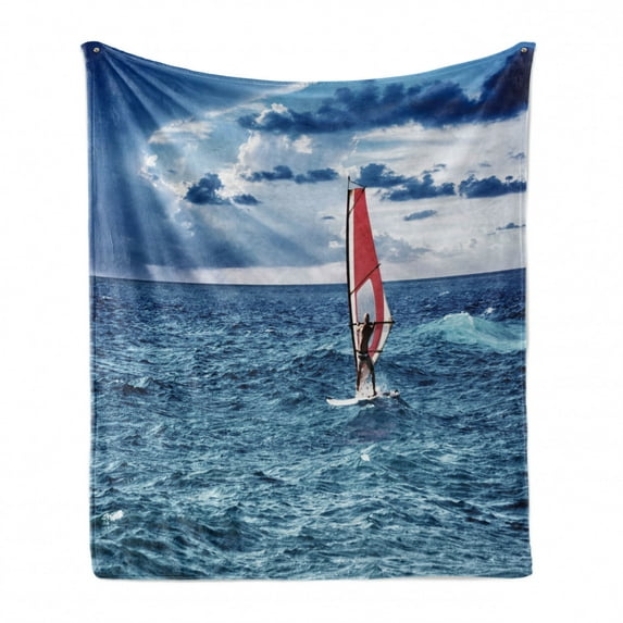 Hero image 0 of Ride the Wave Soft Flannel Fleece Blanket, Windsurfer in the Sea Exotic Adventure Happy Summer Beach Challenge Picture, Cozy Plush for Indoor and Outdoor Use, 50" x 70", Night Blue, by Ambesonne, 0 of 6