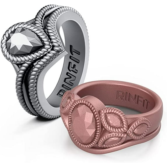 Rinfit Silicone Rings for Women. Female Wedding Bands; Diamond Pear and Oval Set