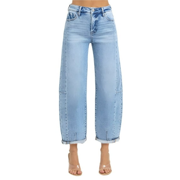 $7895current price $78.95Risen Jeans - High-Rise Relaxed Barrel Leg Jeans with Adjustable Cuffed Hem (25 1/2" Inseam) - RDP5901