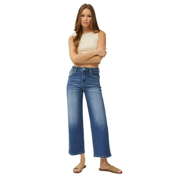 Fit Alert: Tailored with a 27" cropped inseam, these jeans are designed to hit perfectly at the ankle, making them an ideal choice for showcasing your favorite sandals, loafers, or heels. The 10 1/2" high-rise waist provides a secure, flattering fit at the natural waistline, while the generous wide-leg cut ensures maximum comfort through the hip and thigh. Crafted from a premium cotton-rich blend with 3% spandex, these jeans deliver excellent stretch and recovery for all-day wear.