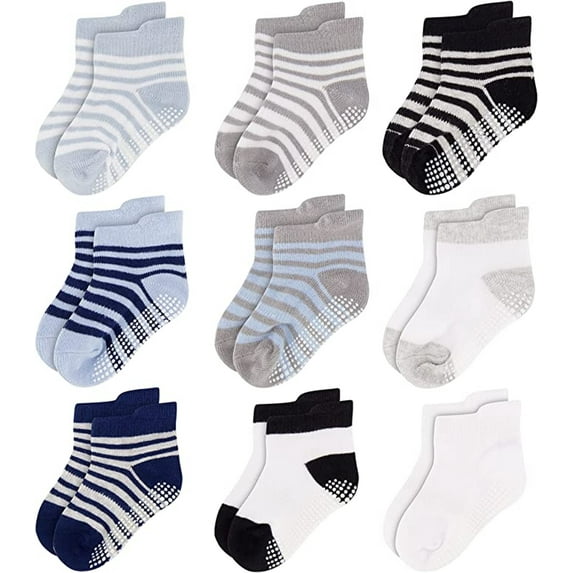 Rising Star Unisex Toddler Socks, Baby Boy Socks, 9 Pack - Non Slip Low-Cut Grip Socks for Infants & Toddlers