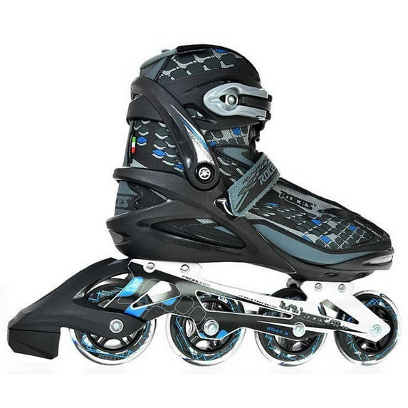 Roces Men's Equalizer Inline Skates Rollerblades, Black/Blue. 400769-00002-8. Designed for novice to intermediate level fitness skaters, the Roces Equalizer Inline Fitness Skates for Men are great for recreational or short distance fitness skating. They feature the Roces Easy-Entry System and Progressive Anatomical Padding for comfort and stability, while the Cool Breath lining helps reduces moisture while skating. The cross mounted extruded aluminum frame provides power transfer and the Roces 80mm, 82A wheels with ABEC5 bearings ensure a smooth roll. Shell: Glass Fiber Reinforced HQ Polypropylene. Closure: Memory Buckle, Velcro Power Strap, Fast Lacing Systen B. Boot: EES Easy Entry System, PAP Progressive Anatomical Padding. Footbed: Orthopedical and Anatomical Balance preserving FitClose. Frame: LiteDesign Extruded Aluminium. Wheels: Roces 80mm 82A. Bearing: Abec 5. Spacers: Aluminium. Color: Black with astro blue and gray accents.