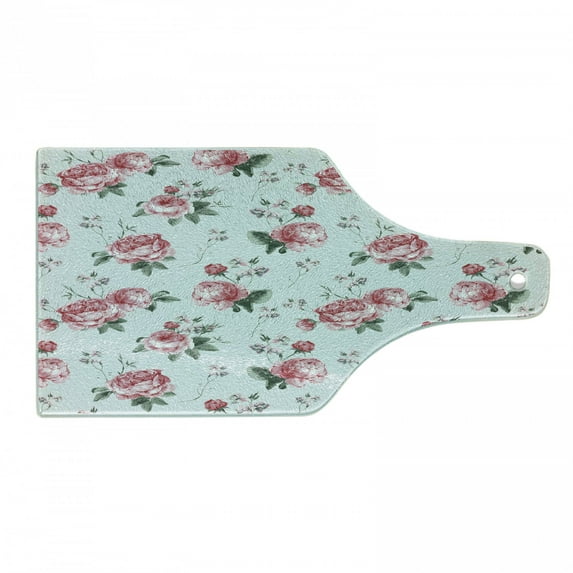 Hero image 0 of Rose Cutting Board, Blooming English Rose Watercolor Painting Style Garden Shabby Form Wild Flowers, Tempered Glass Cutting and Serving Board, Wine Bottle Shape, Reseda Green Pink, by Ambesonne, 0 of 1