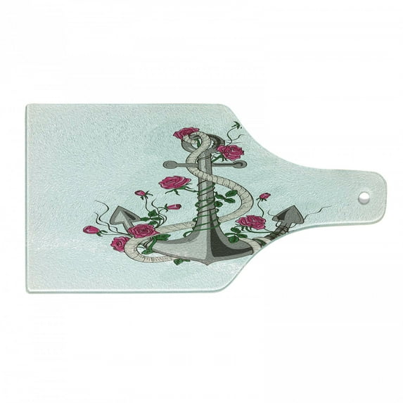 Hero image 0 of Rose Cutting Board, Hand Drawn Illustration of Sea Anchor Entwined with Flowers and Marine Rope, Tempered Glass Cutting and Serving Board, Wine Bottle Shape, Hot Pink Green Taupe, by Ambesonne, 0 of 1