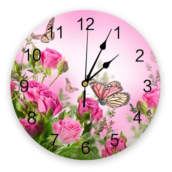Hero image 0 of Rose Flower Bouquet Retro Decorative Round Wall Clock Arabic Numerals Design Non Ticking Wall Clock Large For Bedrooms Bathroom(12 Inch), 0 of 6