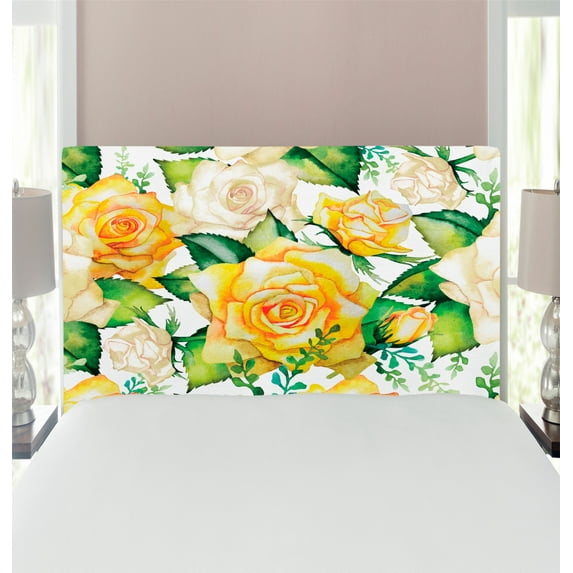 Rose Headboard, Roses Illustration in Watercolor Painting Effect Ornate Wedding Celebration, Upholstered Decorative Metal Bed Headboard with Memory Foam, Twin Size, Yellow Beige Green, by AmbesonneRose Headboard Roses Illustration Watercolor Painting Effect Ornate Wedding Celebration Upholstered Decorative Metal Bed Headboard Memory Foam Twin S