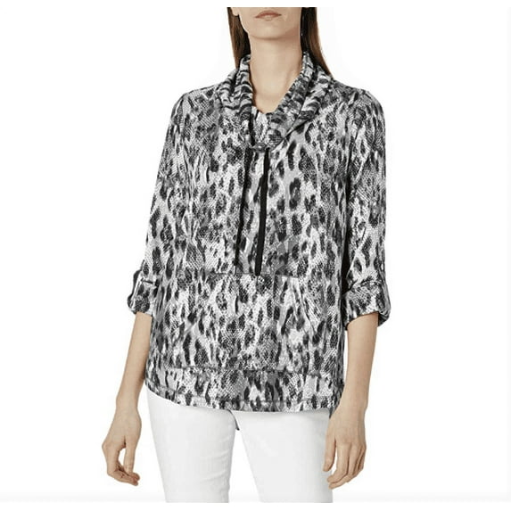 Ruby Rd. Women's Cowl-Neck Leopard Print Silky French Terry Pullover, Sz. PS