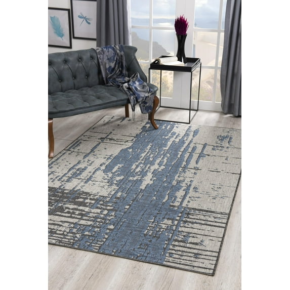 Rug Branch Contemporary Abstract Splash Blue Beige Indoor/ Outdoor Doormat Rug - 3x5