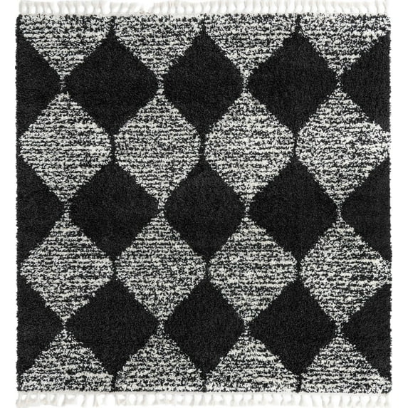 Rugs.com Serenity Shag Collection Rug – 8 Ft Square Black And White Shag Rug Perfect For Living Rooms, Kitchens, Entryways